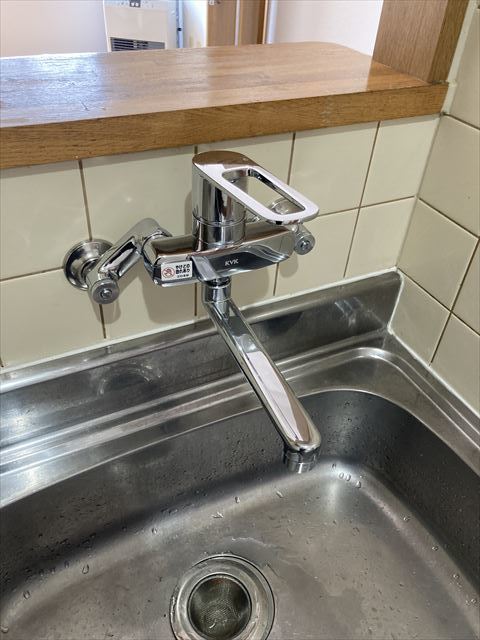 古いタイプの台所混合栓では下げて吐水をするタイプですので上げて吐水をする今のタイプと交換をいたしました。