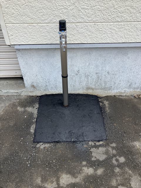 水道検診の会社から「漏水」があるとの指摘を受けて、ご依頼いただき調査をした所『屋外散水栓』の老朽化にて地中で漏れておりましたので、2本立ちの散水栓から1本立ちの不凍水栓柱に変更いたしました。